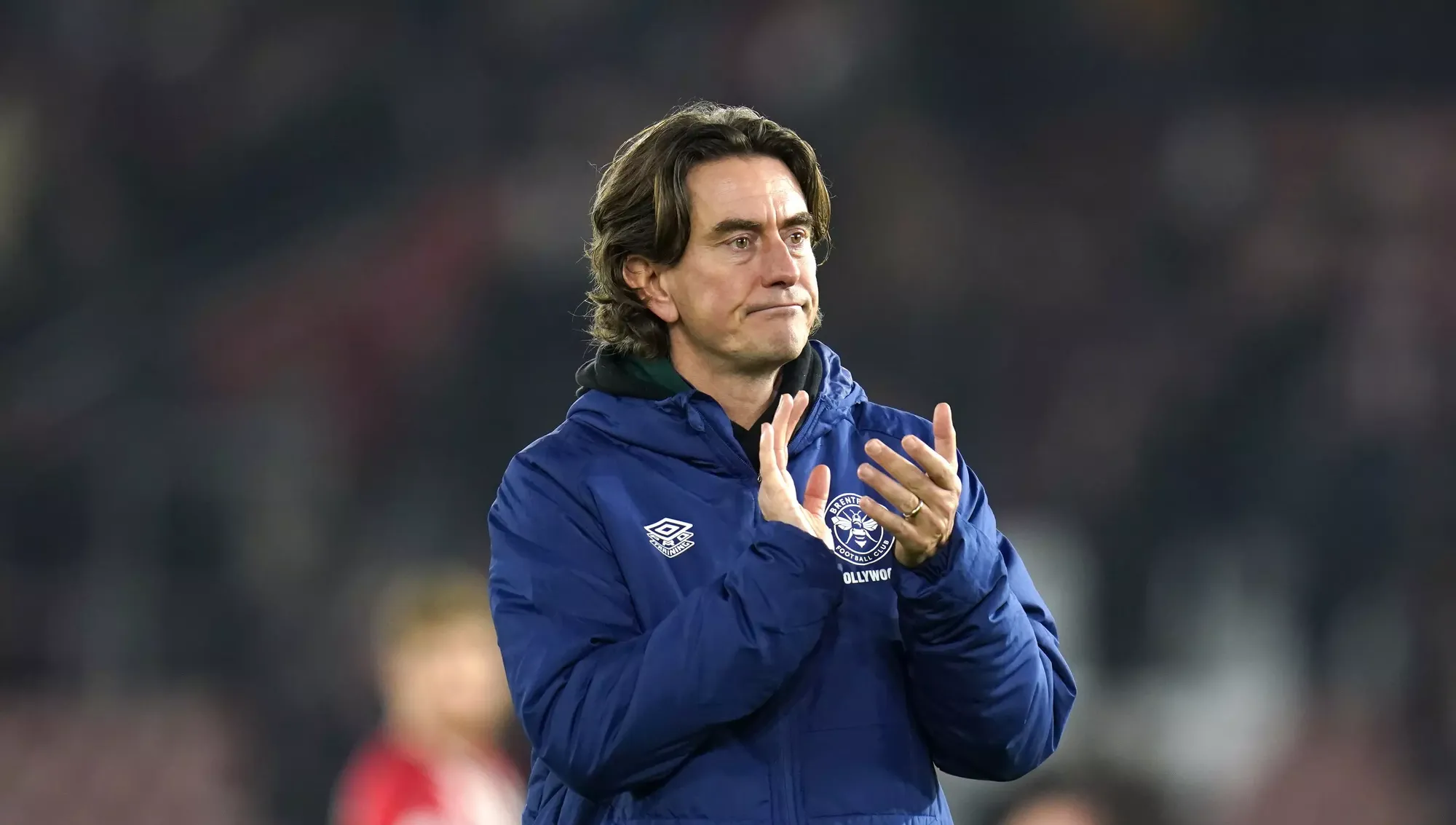 Brentford manager Thomas Frank applauds the fans