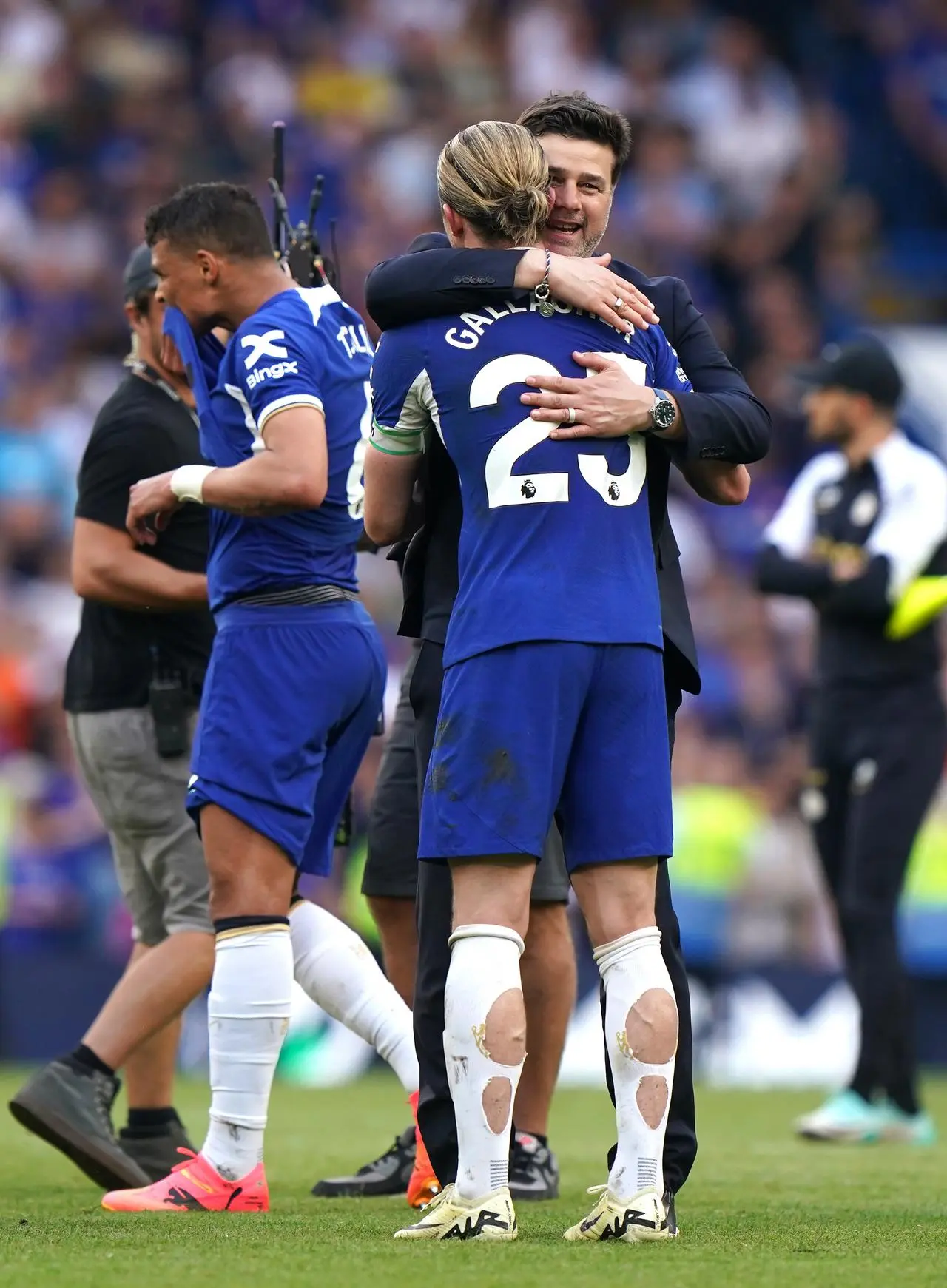 Following the Bournemouth game, which Chelsea won 2-1 thanks to a wonder goal in the first half from Moises Caicedo and a second after the break from Raheem Sterling, Pochettino stayed on the pitch and embraced players and club staff but did not address supporters, nor did he join the squad in a lap of honour.